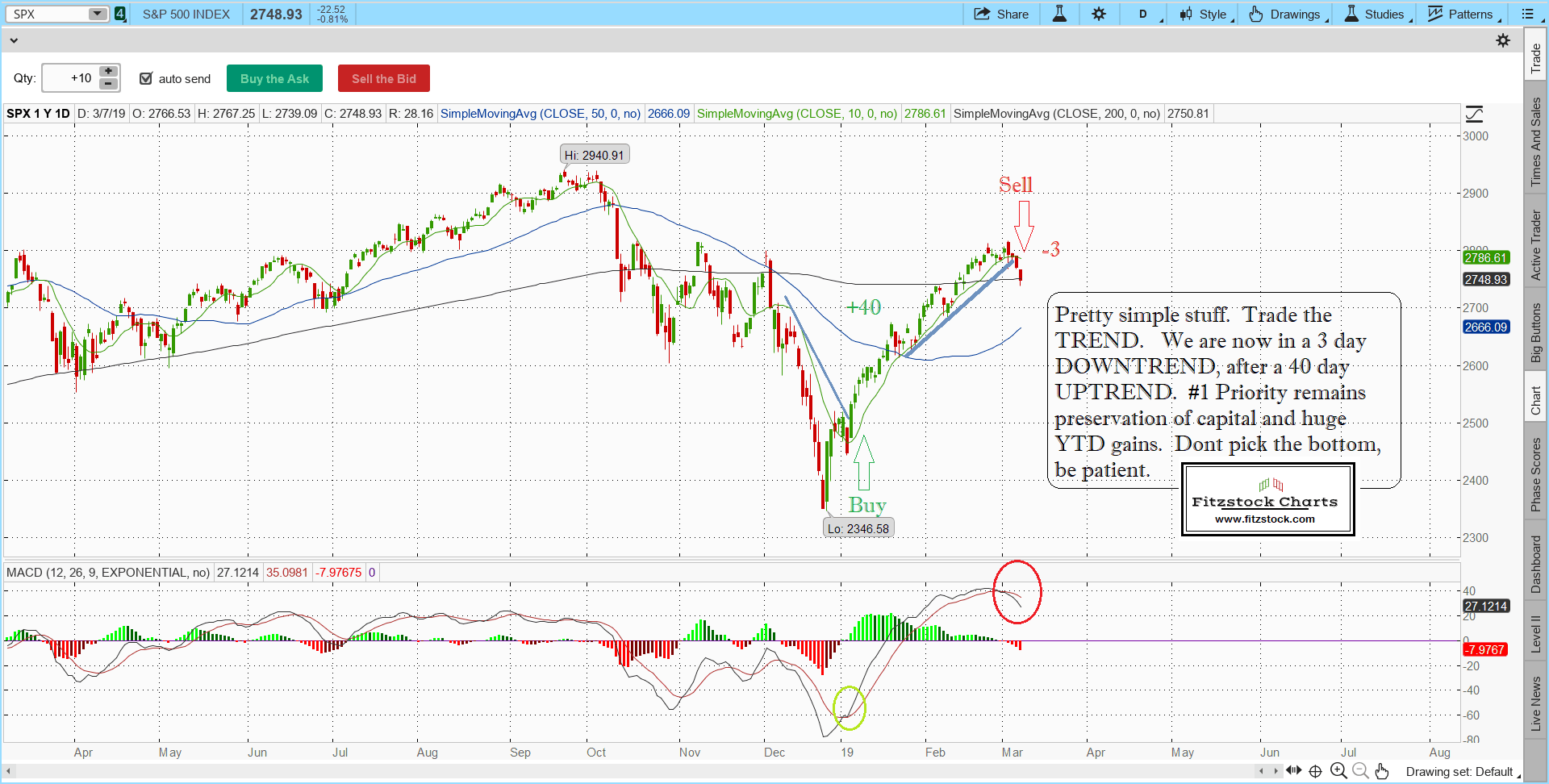 Pretty simple stuff. Trade the TREND. We are now in a 3 day DOWNTREND, after a 40 day UPTREND. #1 priority remains preservation of capital and huge ytd gains. Dont pick the bottom, be patient