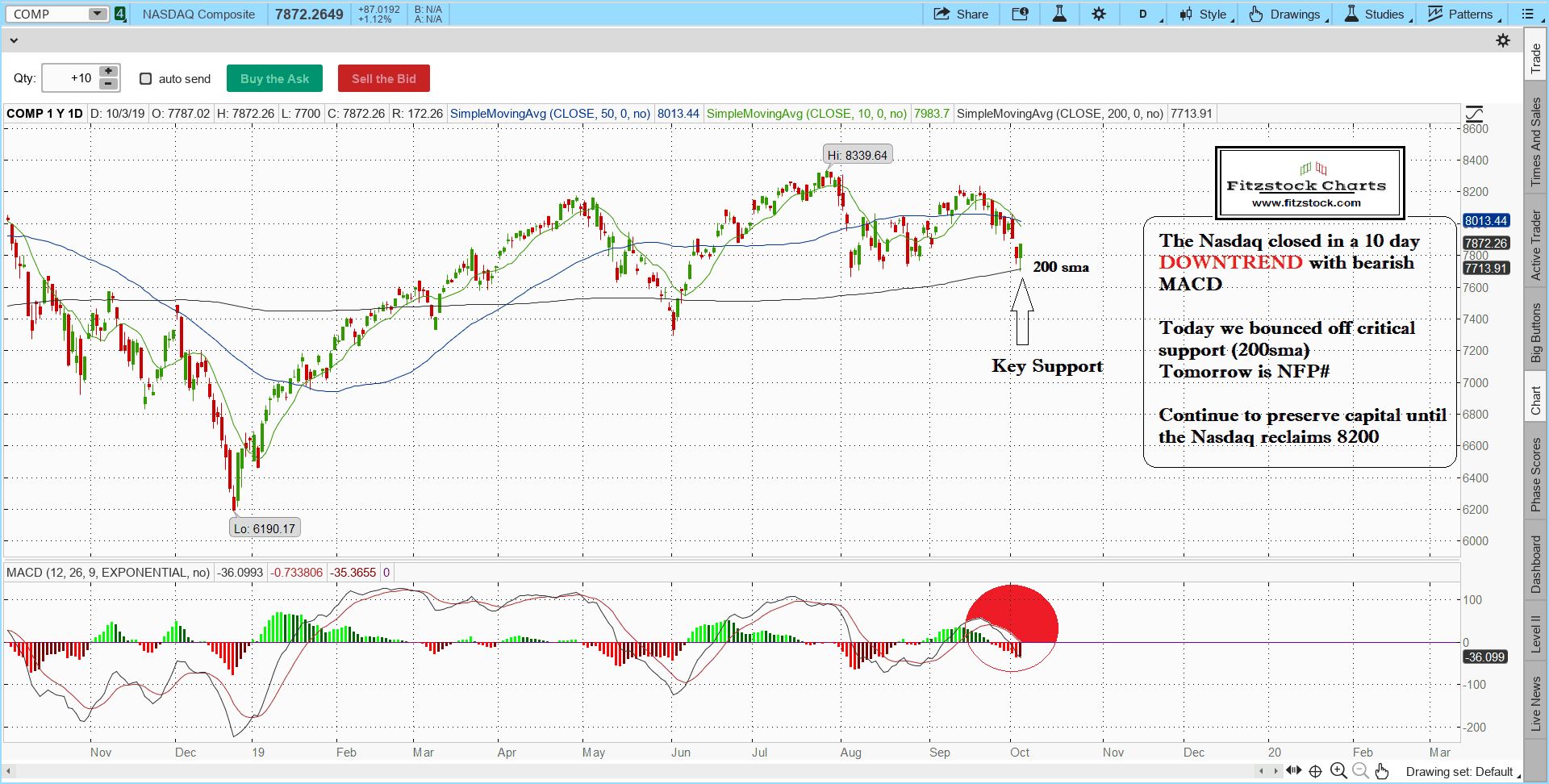 Fitzstock Chart closing notes 10/3/19- Learn how to read stock charts now.