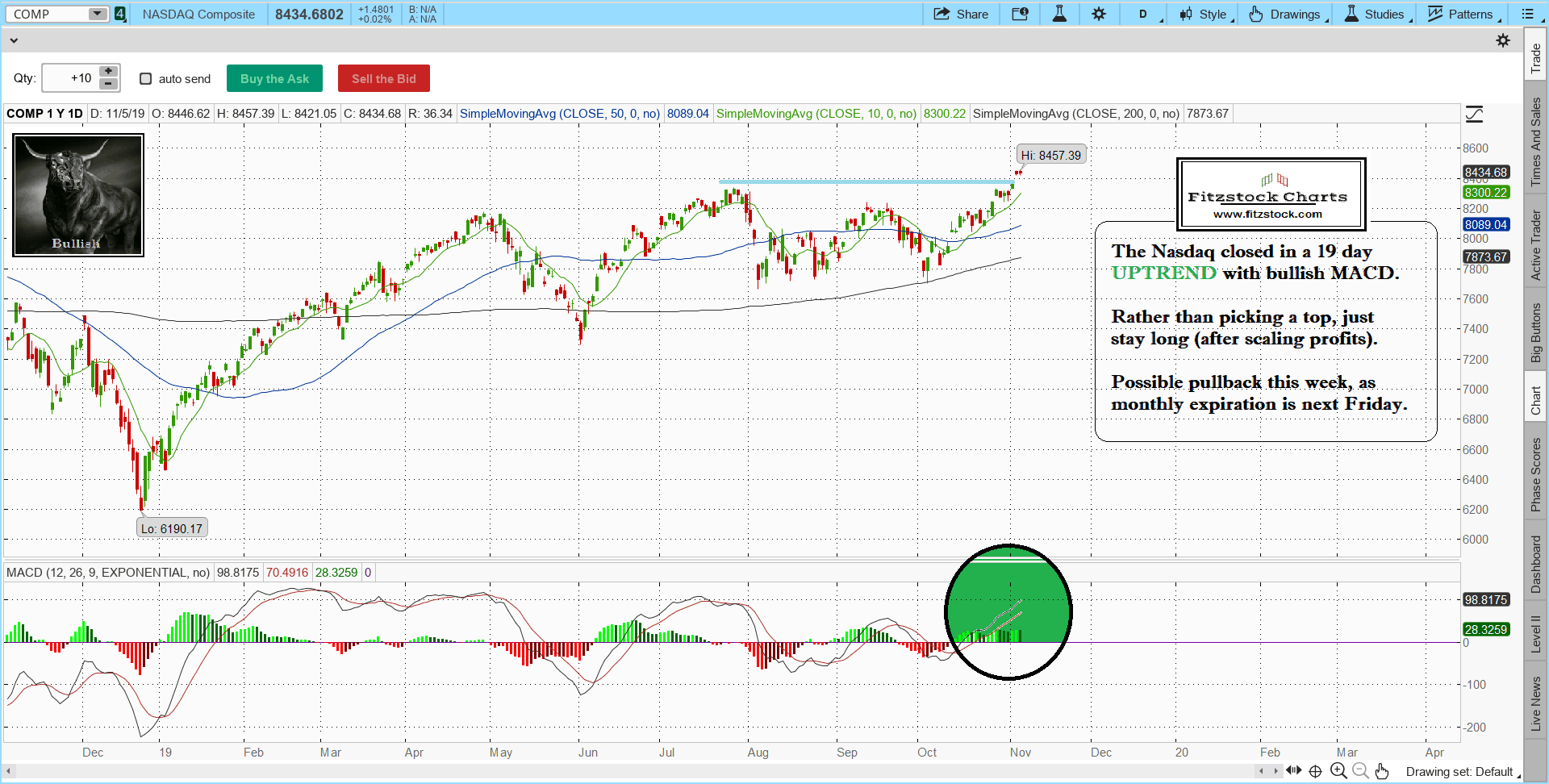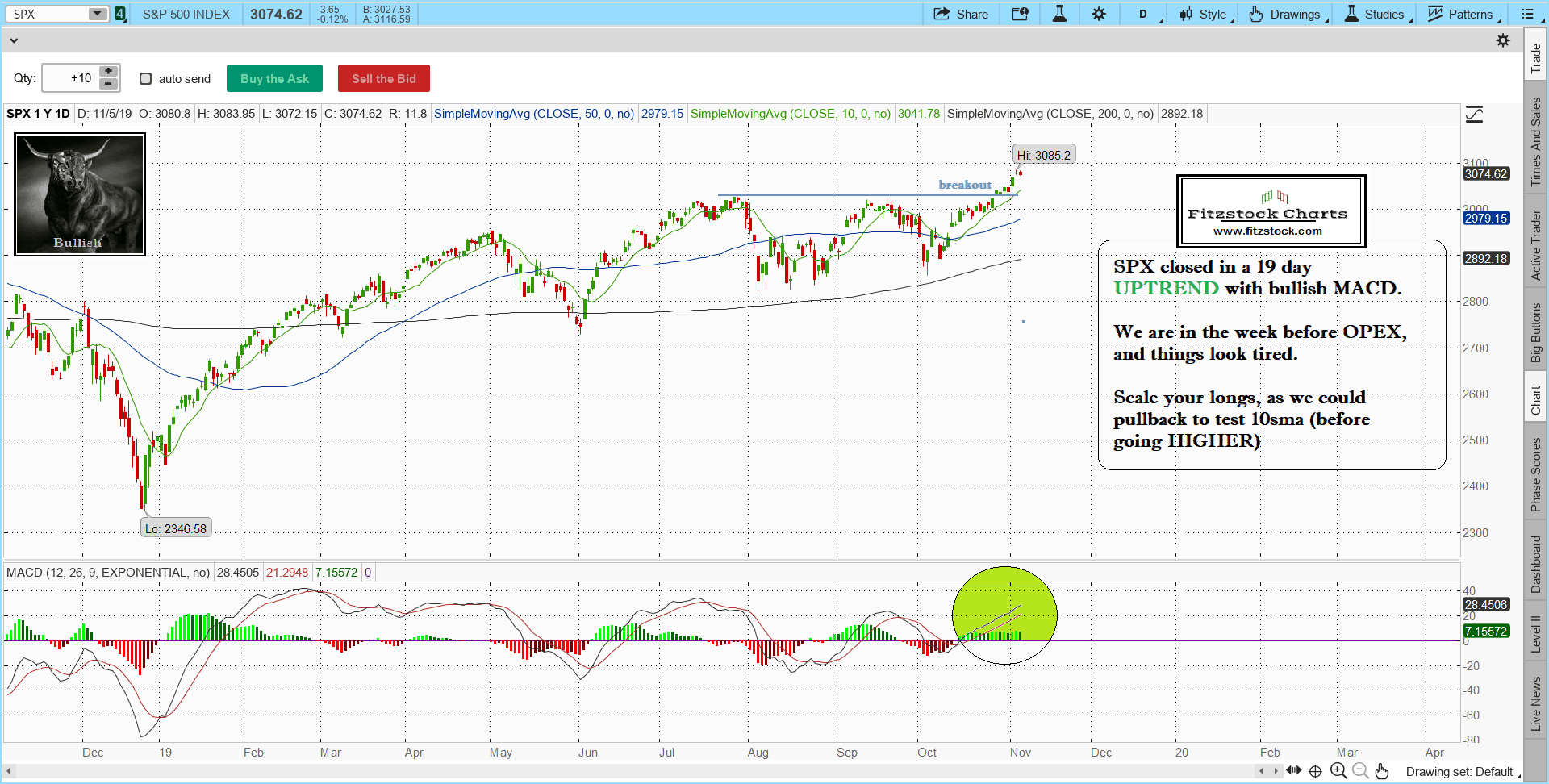 Fitzstock Chart closing notes 11/5/19- Using historical chart patterns with trading rules of engagement
