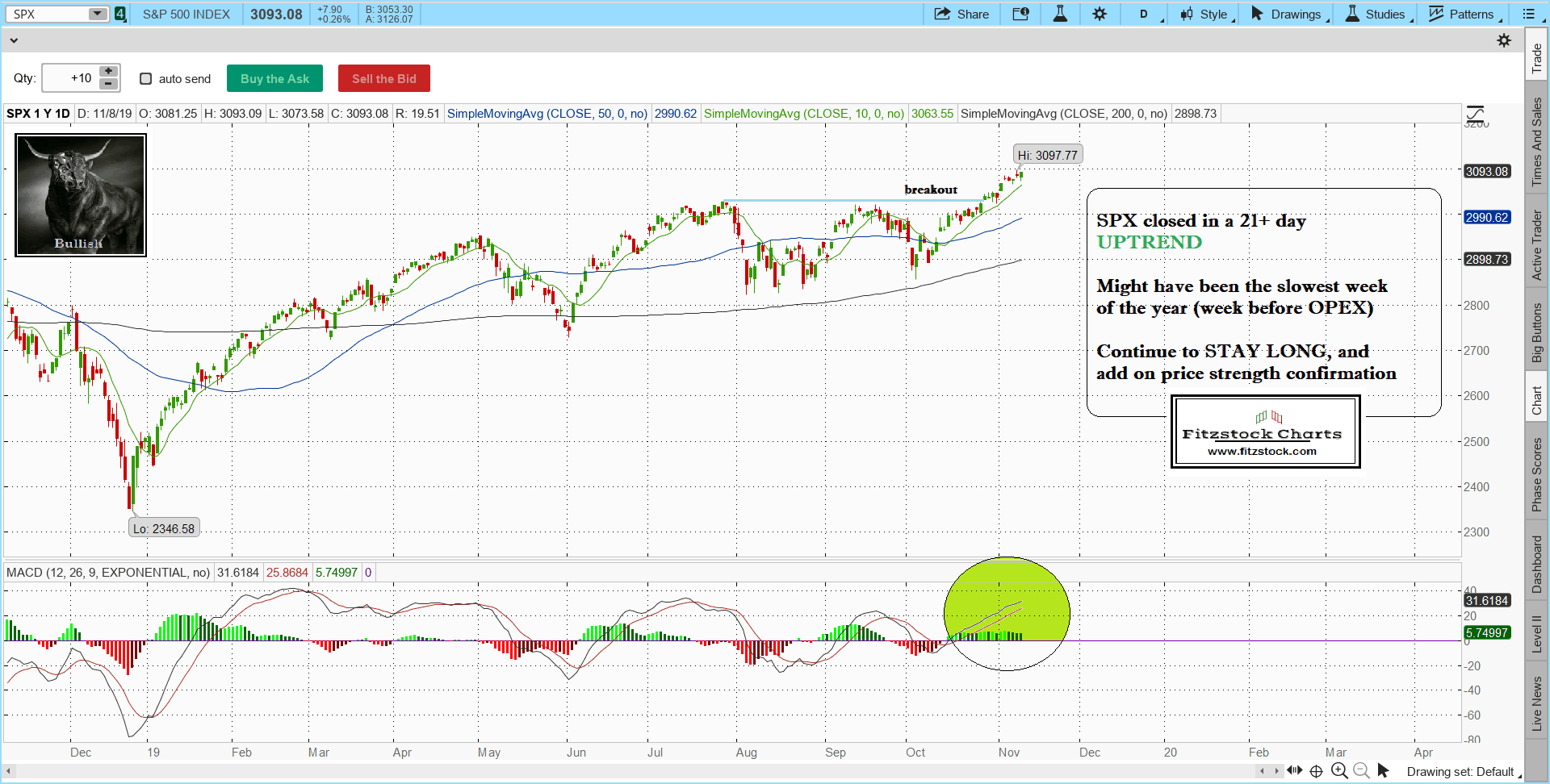 Fitzstock Chart closing notes 11/8/19- Stock Market Technical Analysis with the Best Stock Charts in the industry.