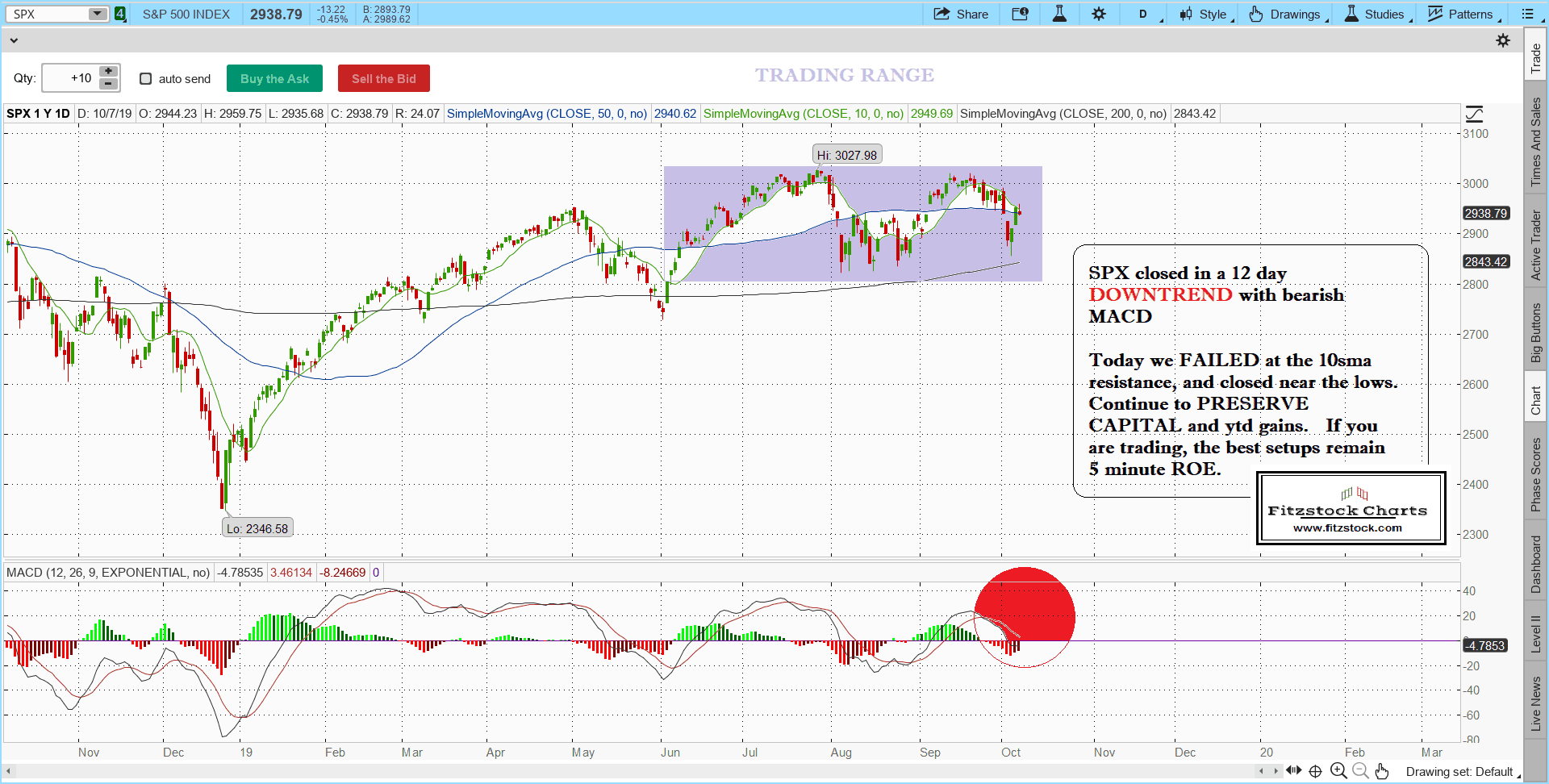 Fitzstock Charts closing notes 10/7/19- Learn how to trade stocks , futures and options now.
