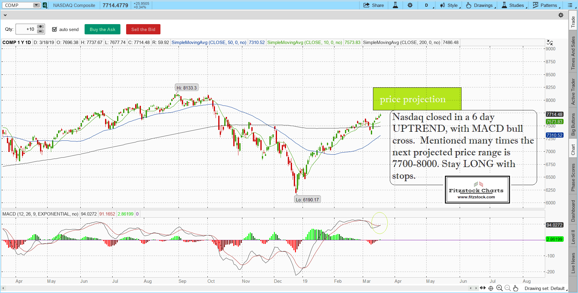 Stock market update with Fitzstock Charts stock trading service.