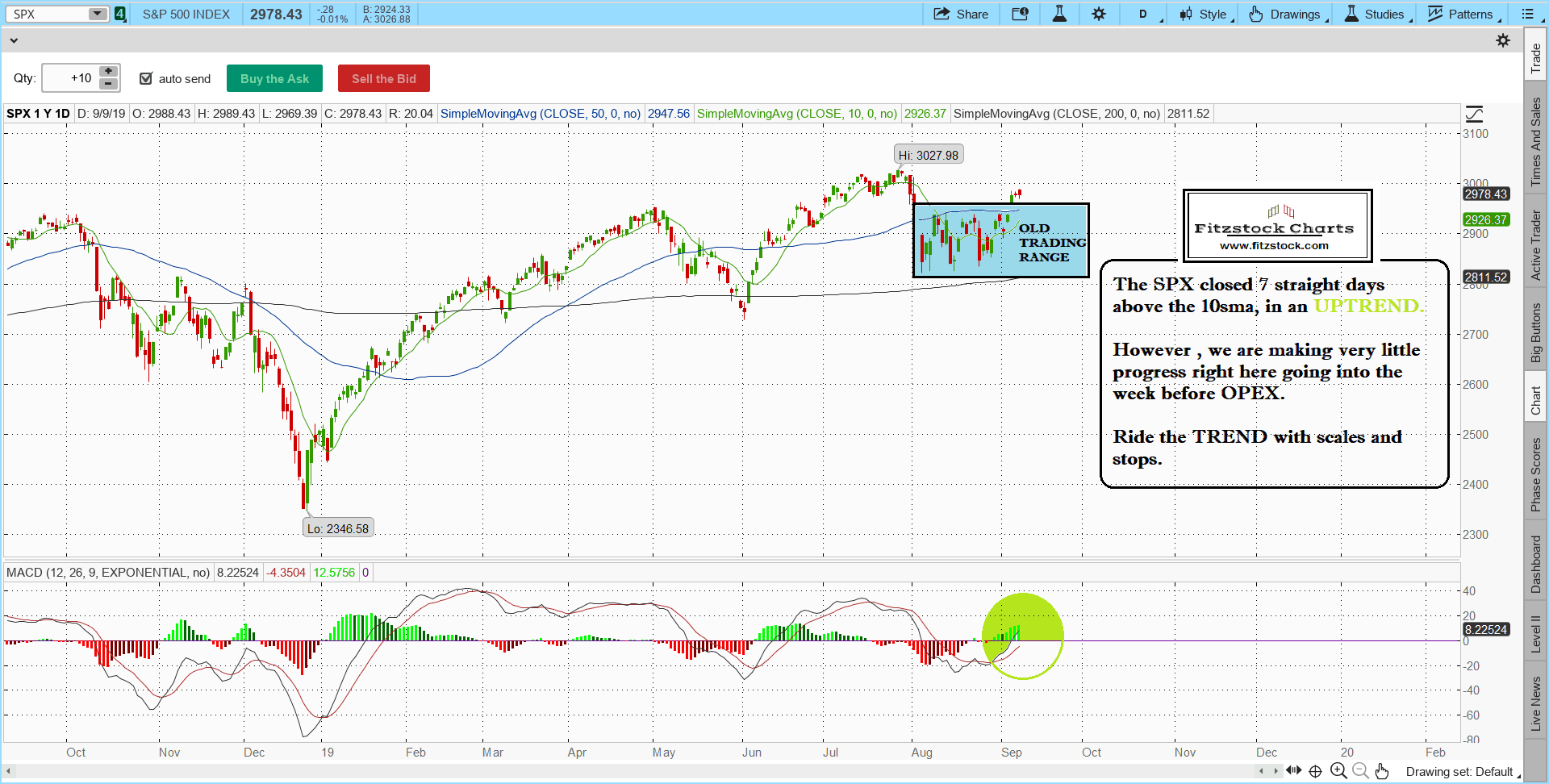 Learn Stock Trading with the Best Stock Charts in the Industry. Fitzstock Charts closing notes 9/9/19