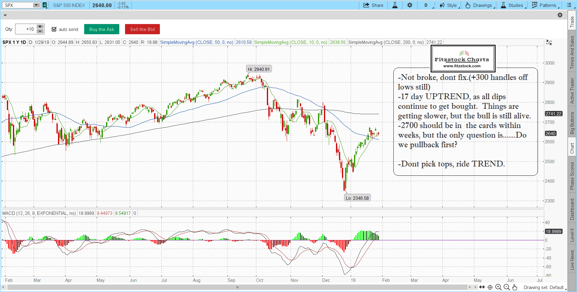 S&P 500 / Nasdaq composite daily chart close with notes 1/29/19-Trading Rules Of Engagement-Stock Trading Strategies-Stock Options Strategies