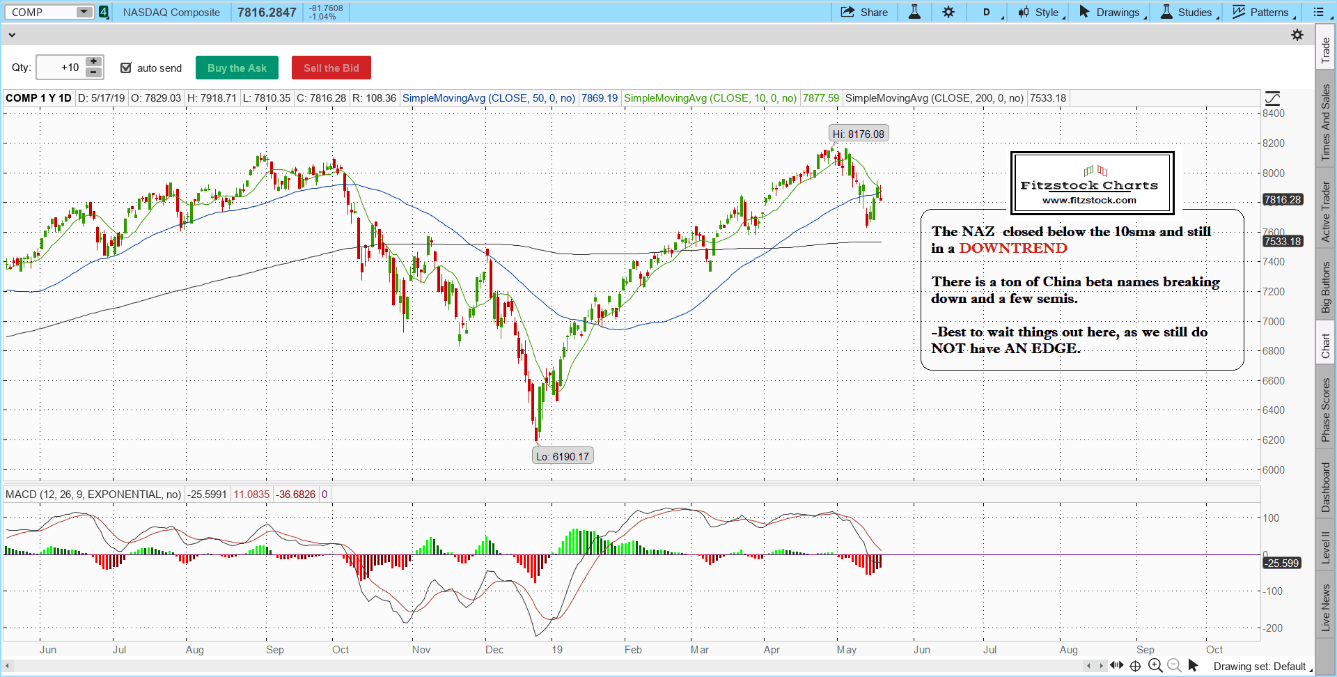 SPX/NAZ daily closing charts with notes 5/17/19- Stock Trading Analysts-Learn Stock Trading-How To Read Stock Charts