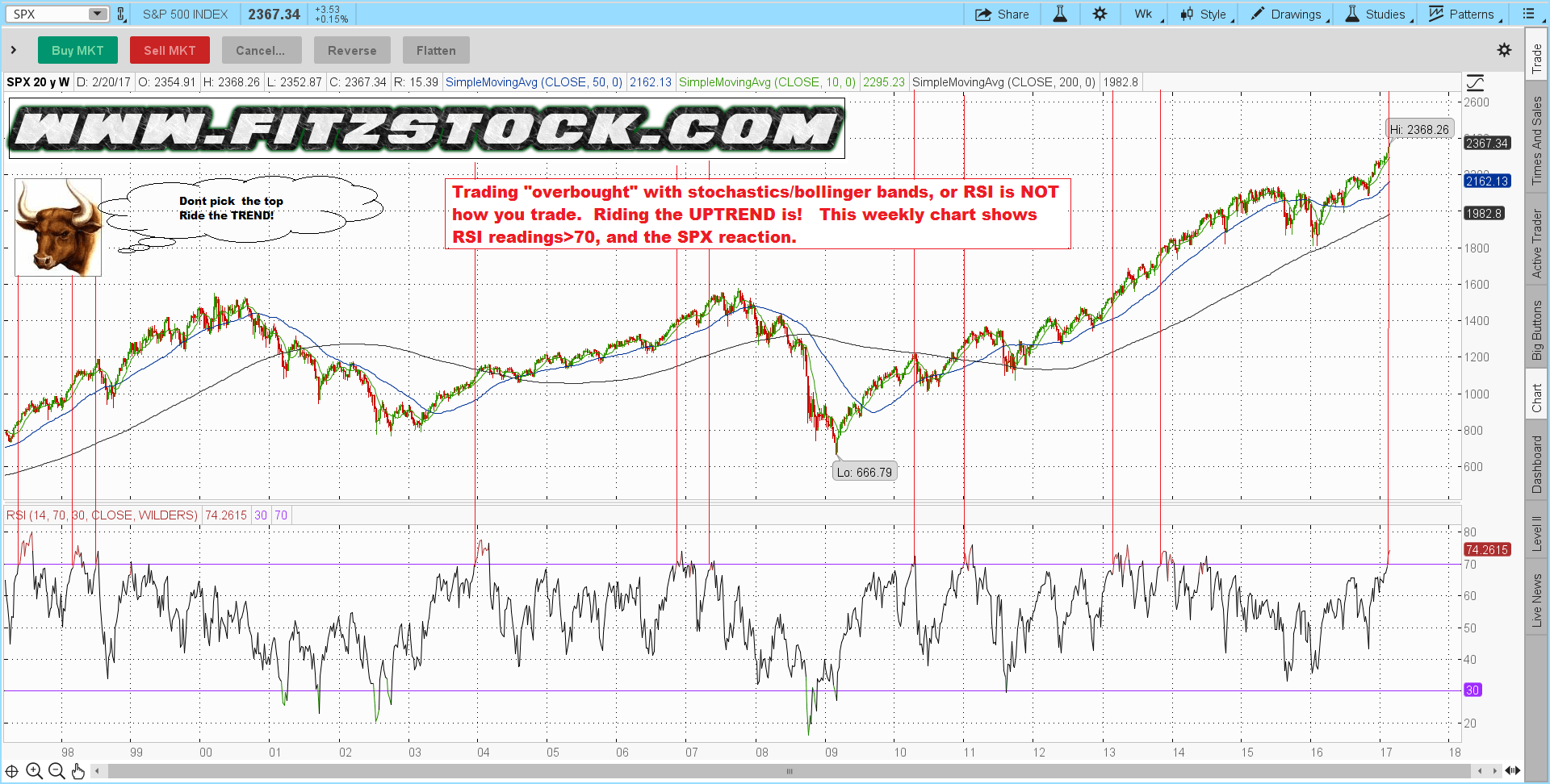 SPX weekly RSI>70 readings