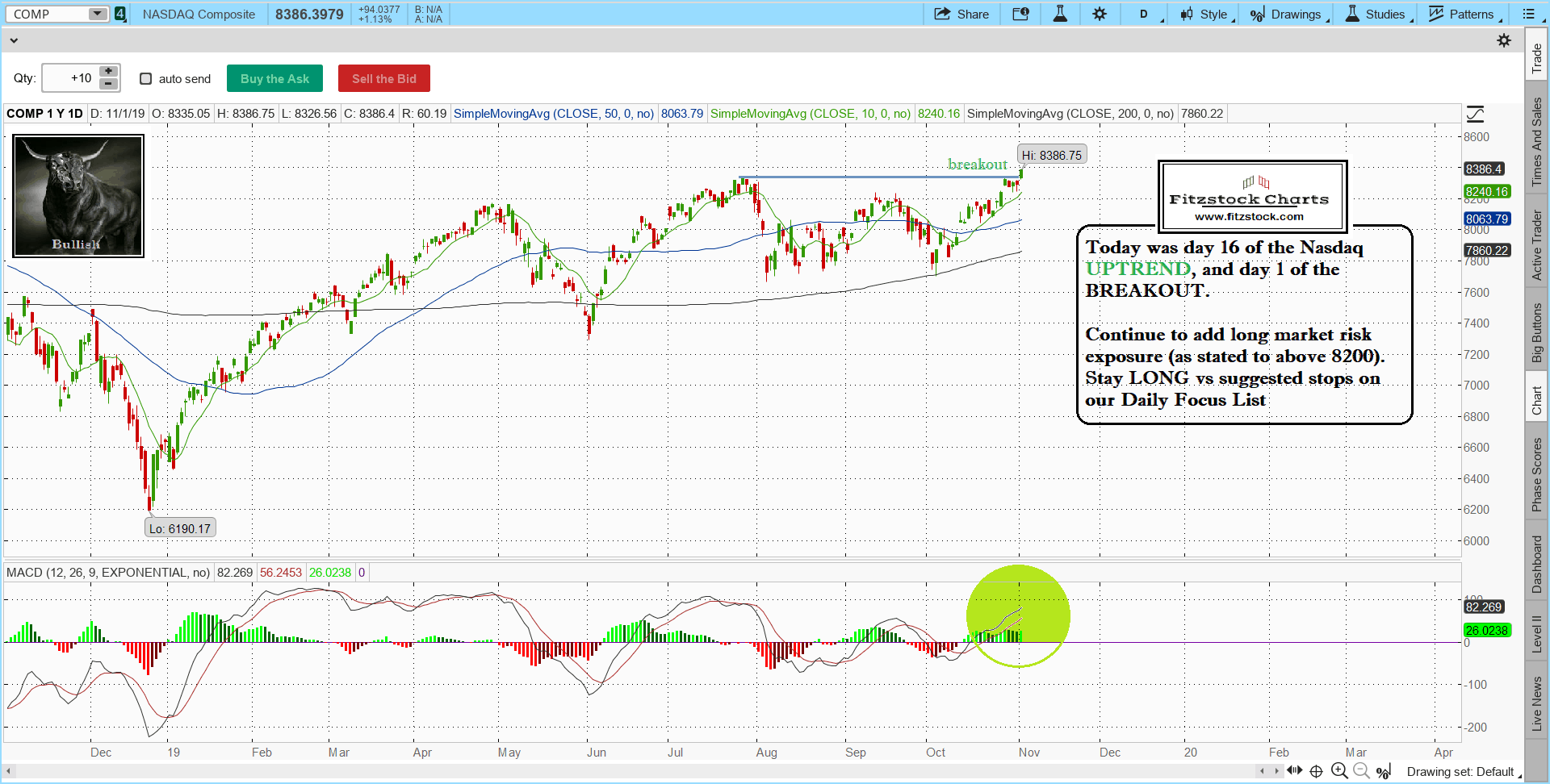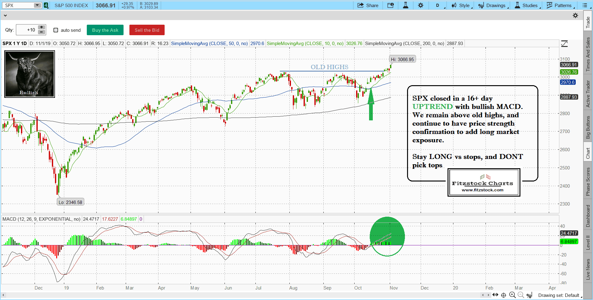 Stock Chart Analysis with Fitzstock Charts closing notes 11/1/19