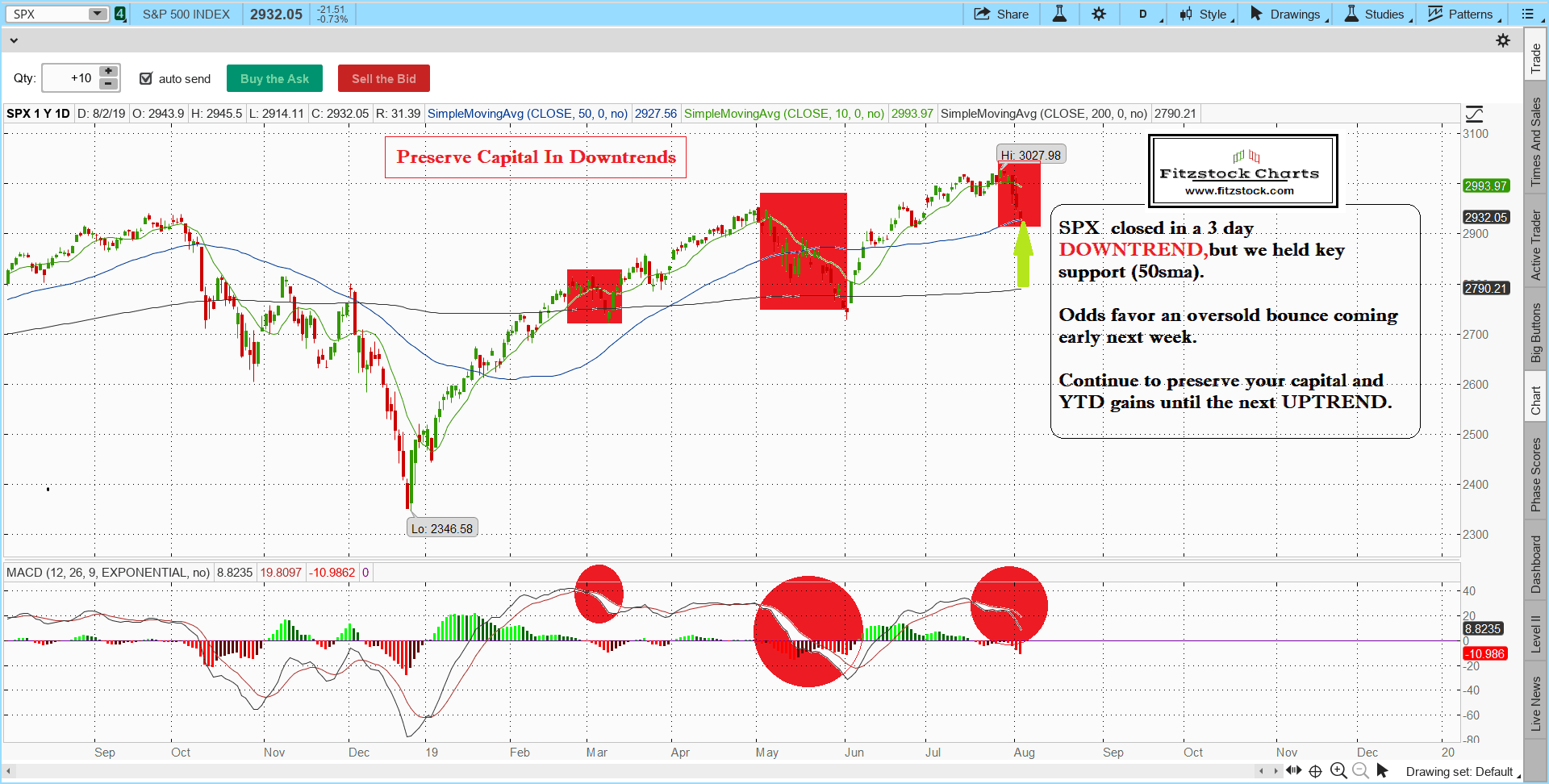 SPX closed in a 3 day downtrend but held the key 50sma support.