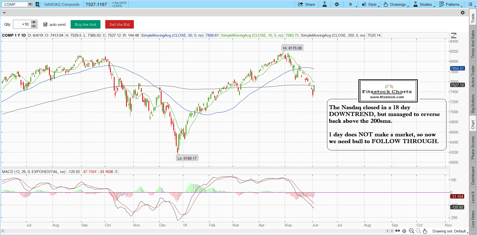 SPX 700x345 - Stock Chart Analysis with Fitzstock ChartsThe Nasdaq daily chart close.- Learn Stock Trading and How to Read stock charts with Fitzstock Charts.