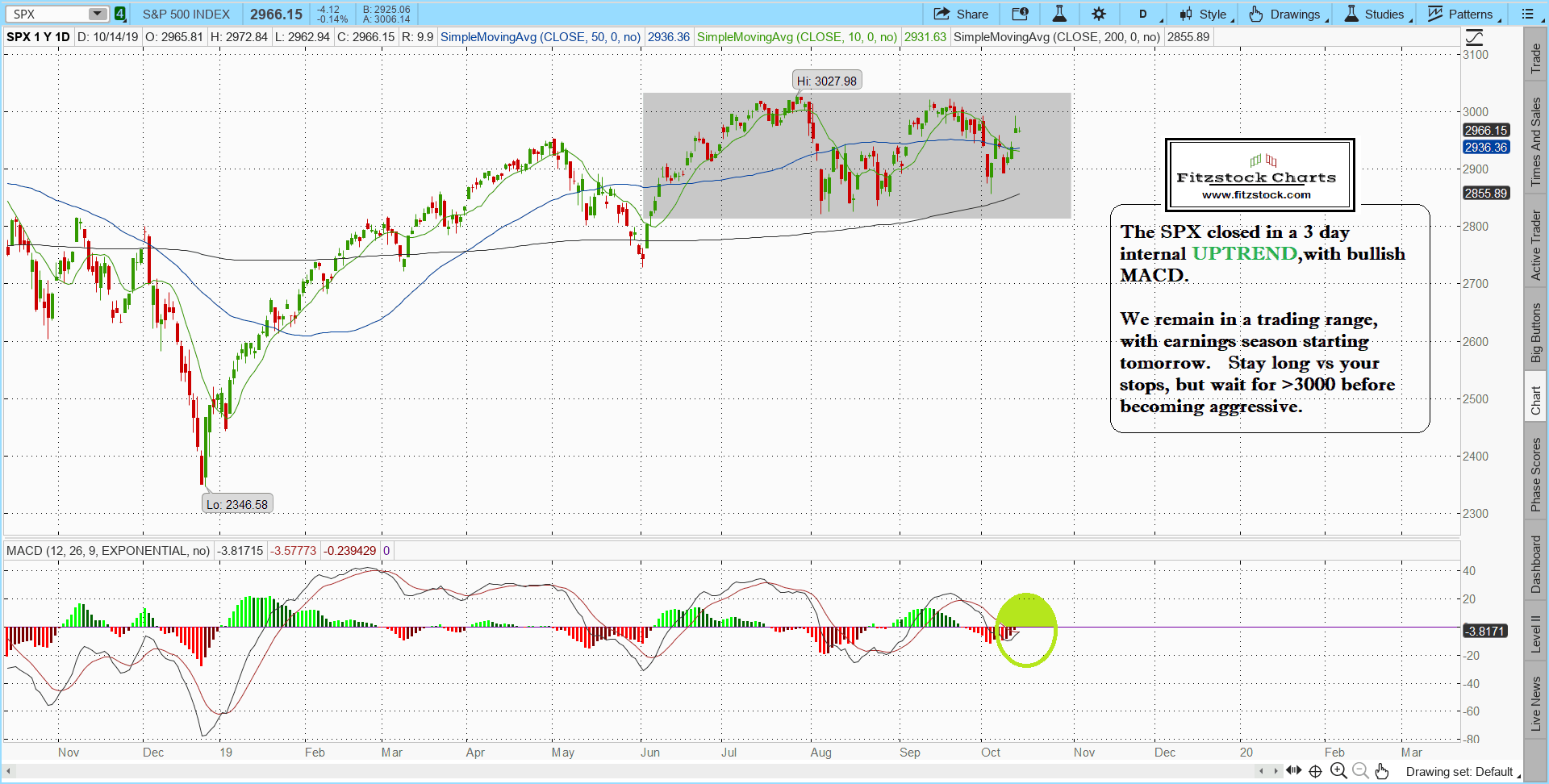 SPX 700x354 - Stock Charts-Technical Analysis with Fitzstock Charts closing notes 10/14/19