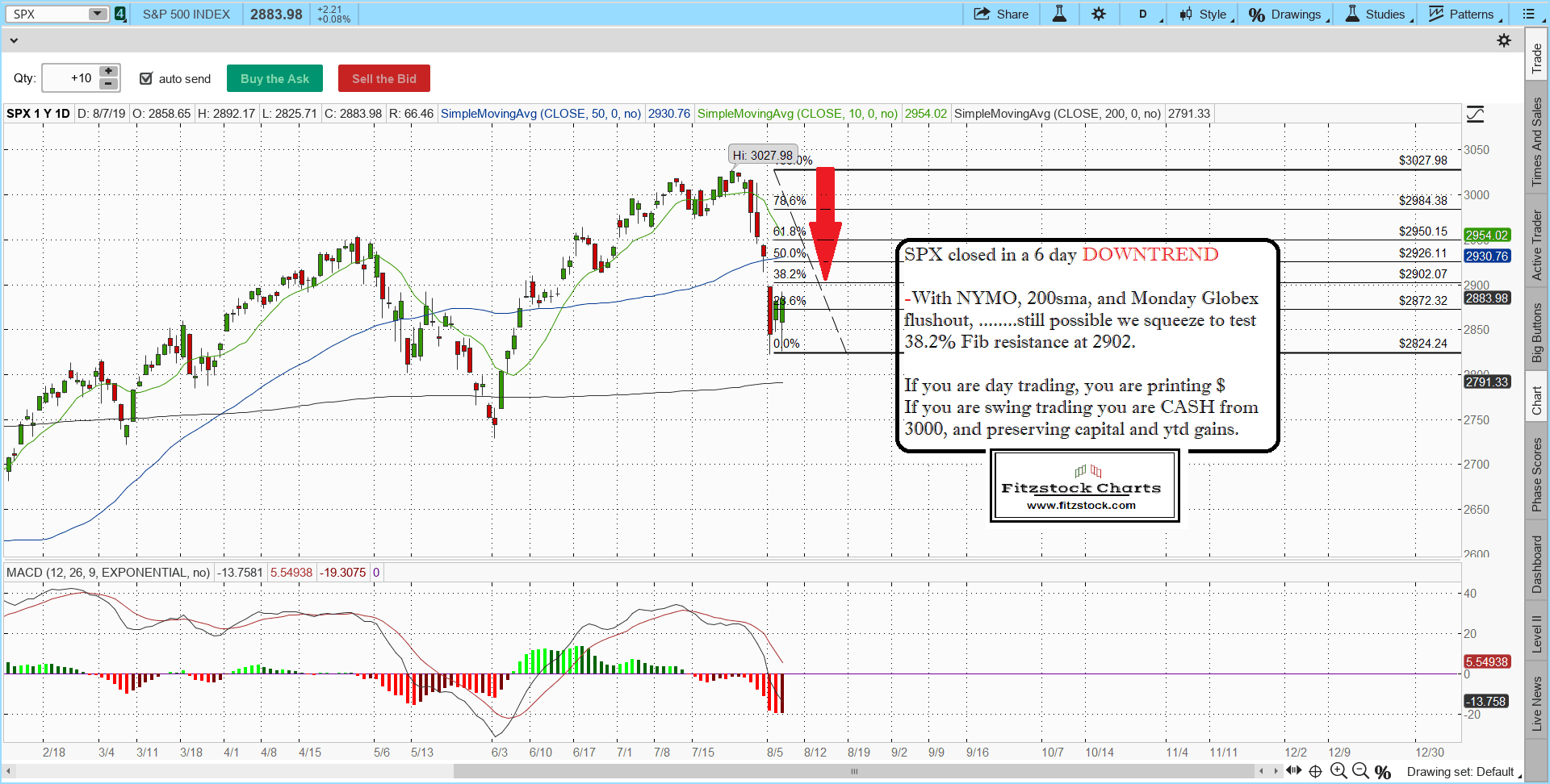 SPX closed in a 6 day DOWNTREND (2902 key resistance)