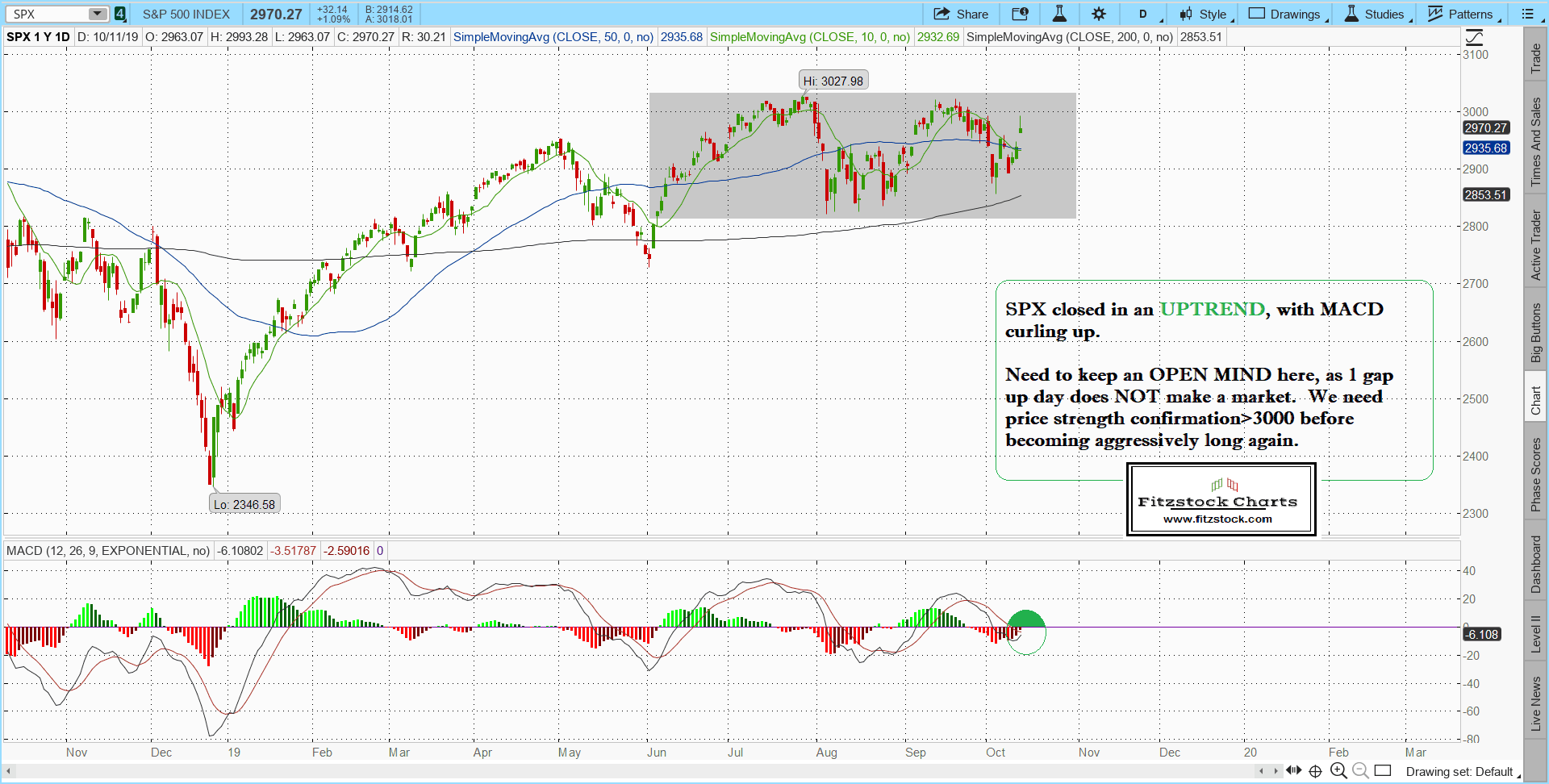 Stock Market Technical Analysis- Fitzstock Charts closing notes 10/11/19