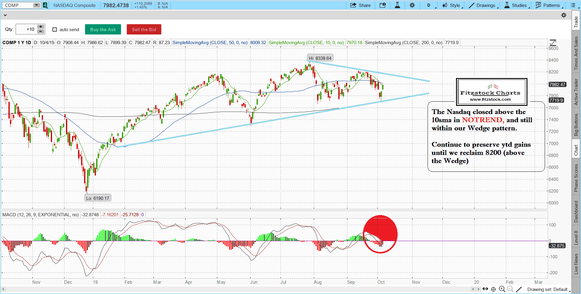 Stock Market Technical Analysis with Fitzstock Charts closing notes 10/4/19
