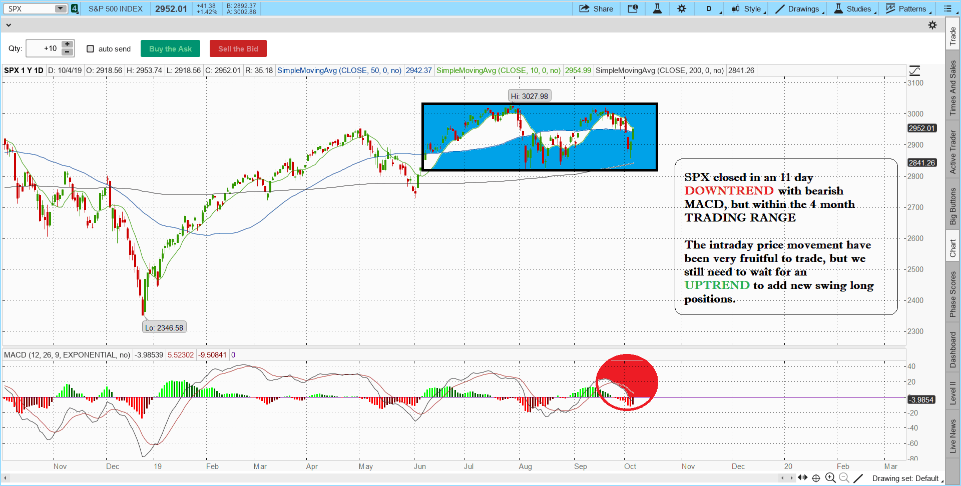 SPX closing chart with notes 10/4/19