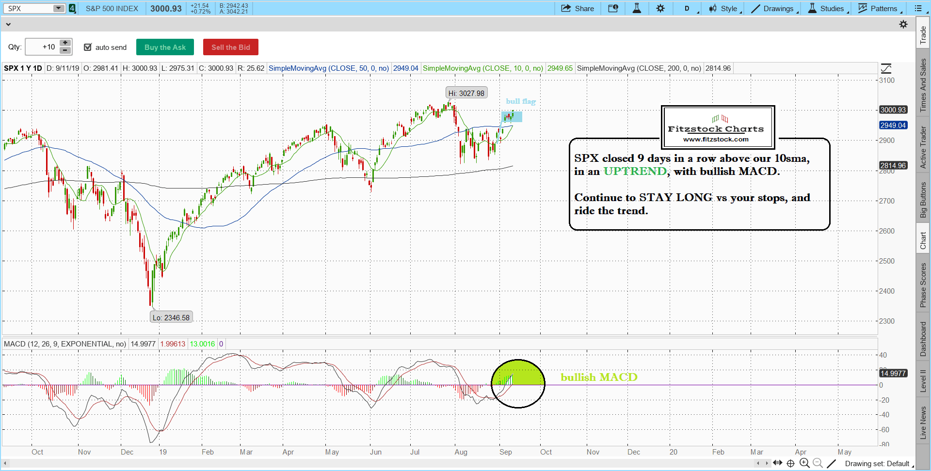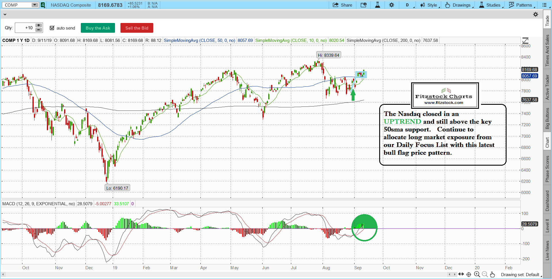 Stock Market Technical Analysis with Fitzstock Charts closing notes 9/11/19