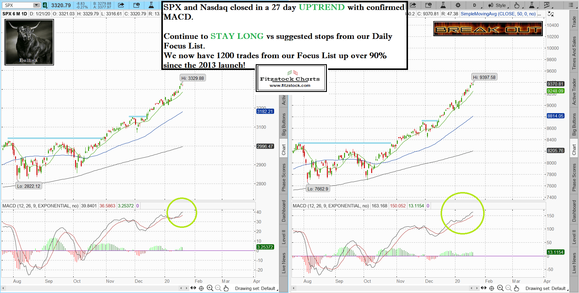 Stock Market Technical Analysis with Fitzstock Charts closing notes- The Best Stock Charts in the Industry