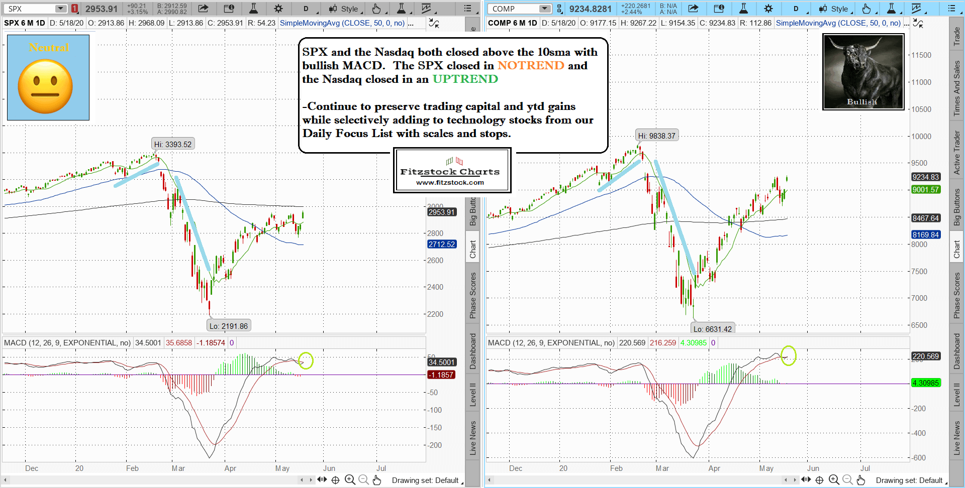 Stock market technical analysis with the best stock charts in the industry.- Fitzstock Charts closing notes 5/18/20