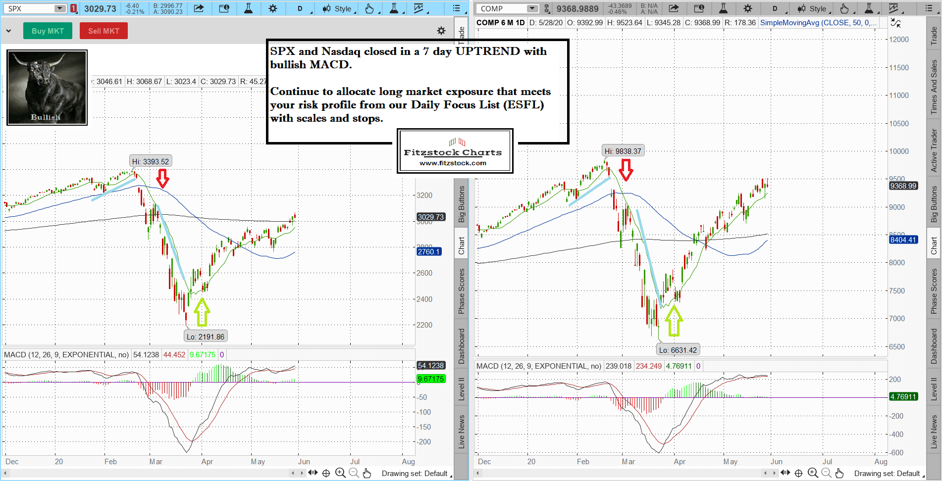 Stock Market technical analysis with the best stock charts in the industry.- Fitzstock Charts closing notes. 5/28/20
