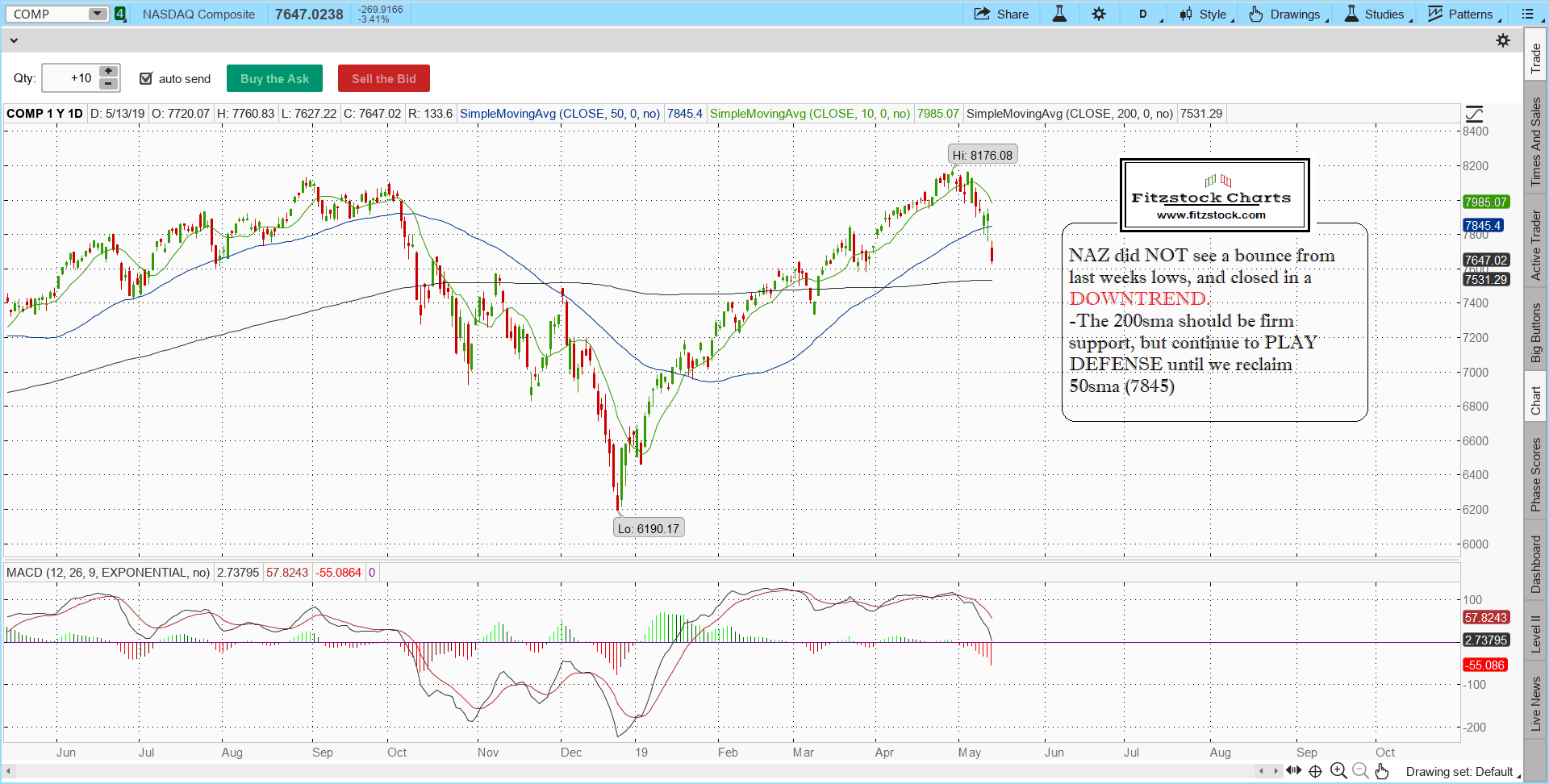 Fitzstock Charts daily chart close with notes- SPX 5/13/19