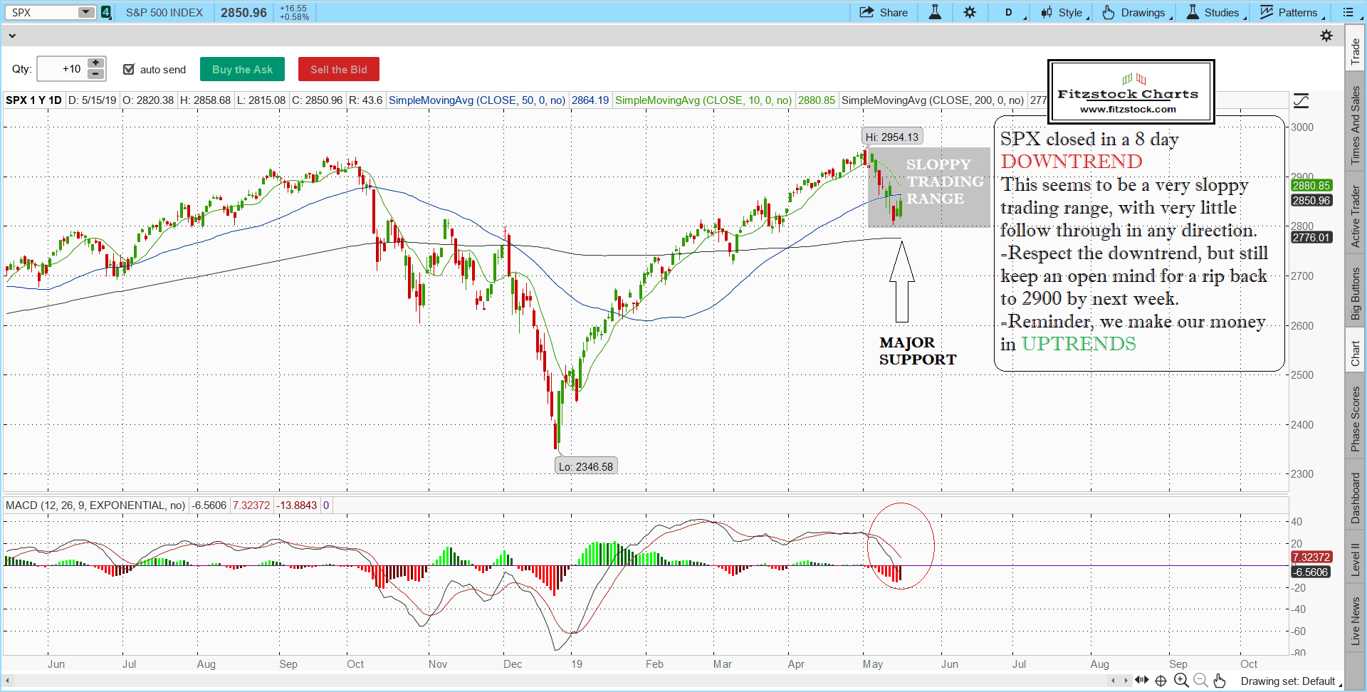 Fitzstock Charts daily chart close with SPX