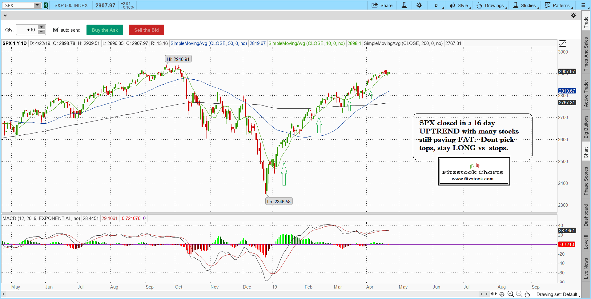 Fitzstock Charts Stock Market Update 4/22/19