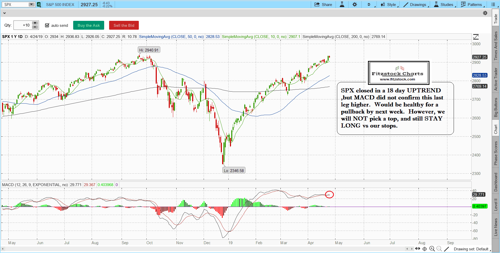 Fitzstock Charts stock market update 4/24/19