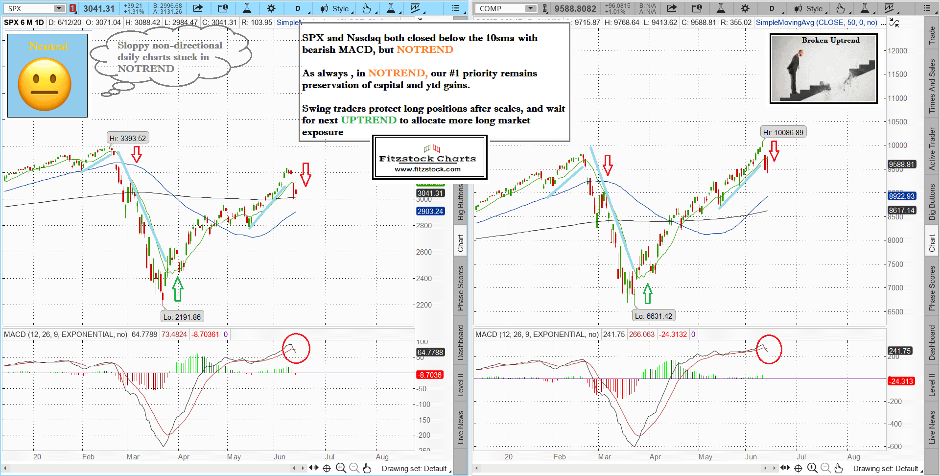 Trade FAANG stocks with rules of engagement based on market trend.- Fitzstock Chart closing notes 6/12/20