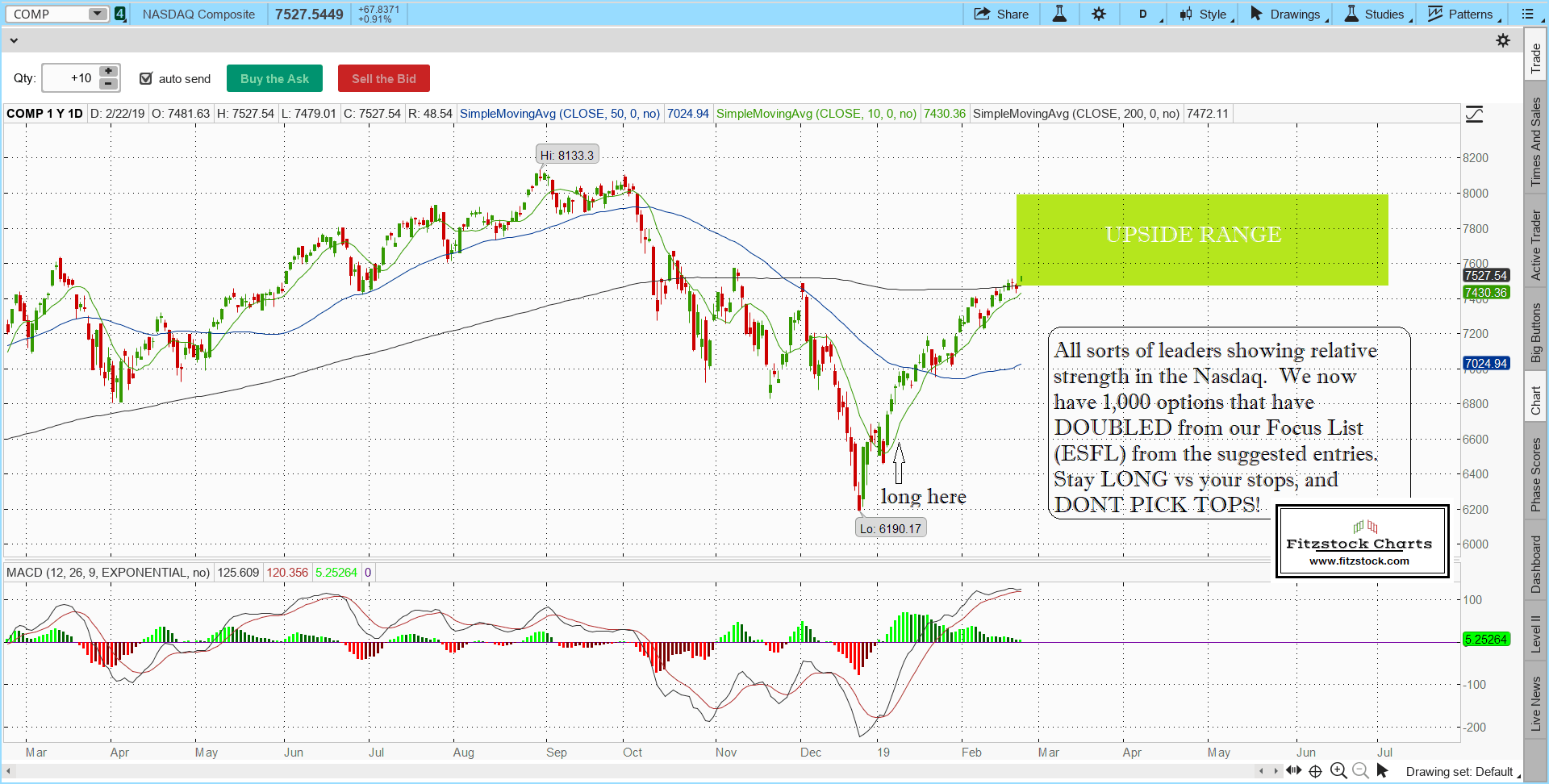 All sorts of leaders showing relative strength in the Nasdaq. We now have 1,000 different stock options in our +90% club from our Focus List (ESFL). Stay long vs your stops, and DONT pick tops!